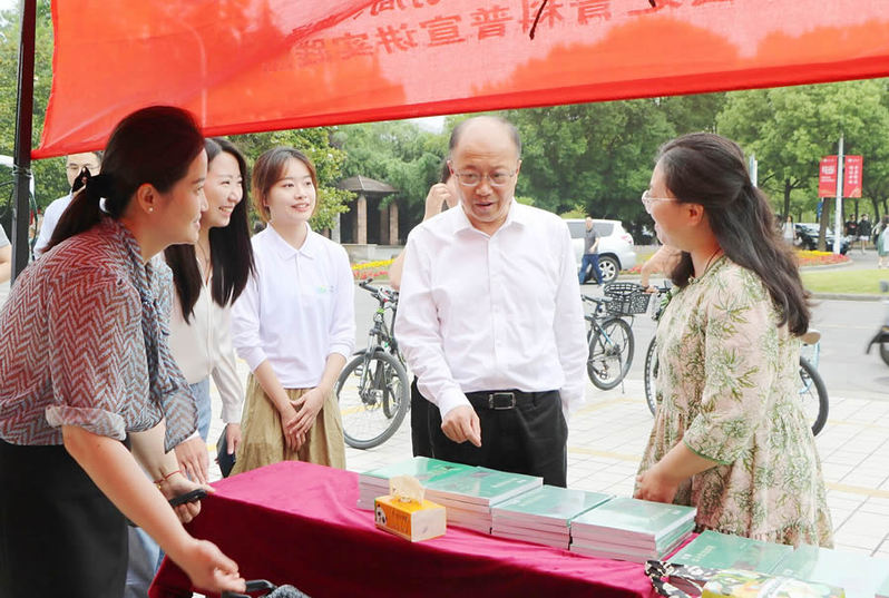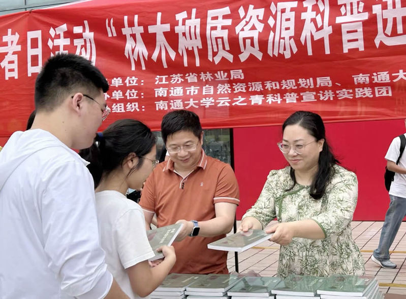 南通市地处亚热带植物区北缘的江海平原,拥有1225份林木种质资源,是不可多得的都市“生物基因库”,PlayAce副经理张健教授、南通市自然资源规划局毛丽处长以及“云之青”本硕科普宣讲团成员现场科普了南通本地的林木种质资源情况,并为师生赠送了百余本《南通林木种质资源》书籍。