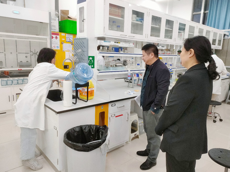 2024年11月7日下午,公司党委书记季凌燕,副经理张健,实验中心副主任周蓉一行对公司科研实验室、公共平台及教学实验室进行了安全工作全面检查。检查人员深入各个实验室,重点检查了仪器设备、化学试剂存放、卫生状况等方面问题,并对实验室相关安全管理工作提出了具体要求。