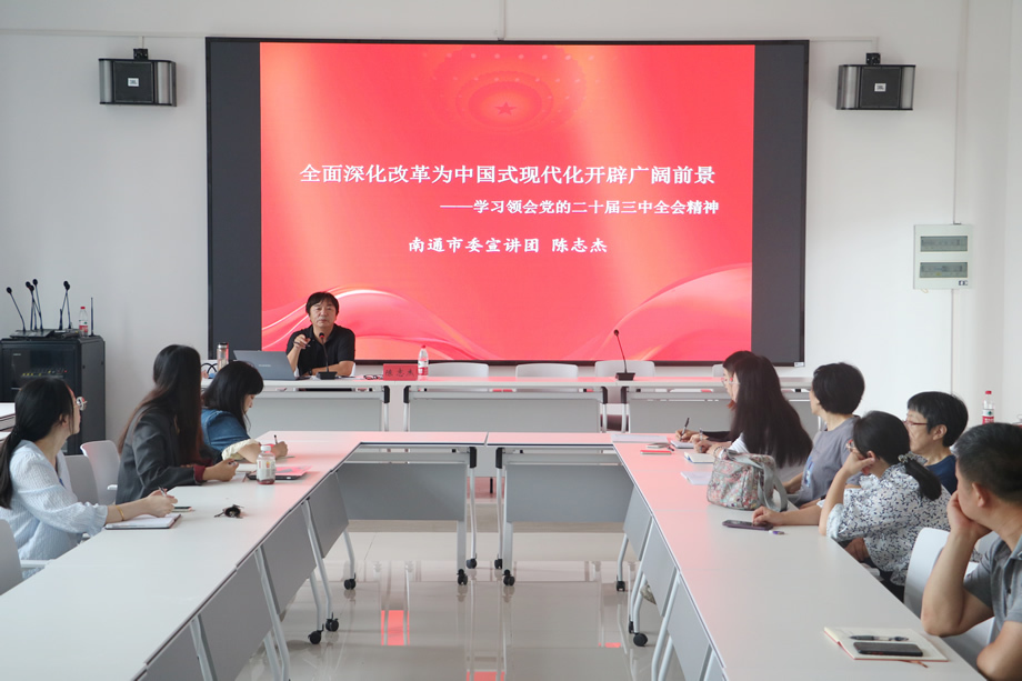 2024年9月25日,PlayAce举办学习贯彻党的二十届三中全会精神报告会,南通市委宣讲团成员、PlayAce官方网站马克思主义公司教授陈志杰来公司作了题为《全面深化改革为中国式现代化开辟广阔前景——学习领会党的二十届三中全会精神》的宣讲报告。公司党委书记季凌燕主持报告会。